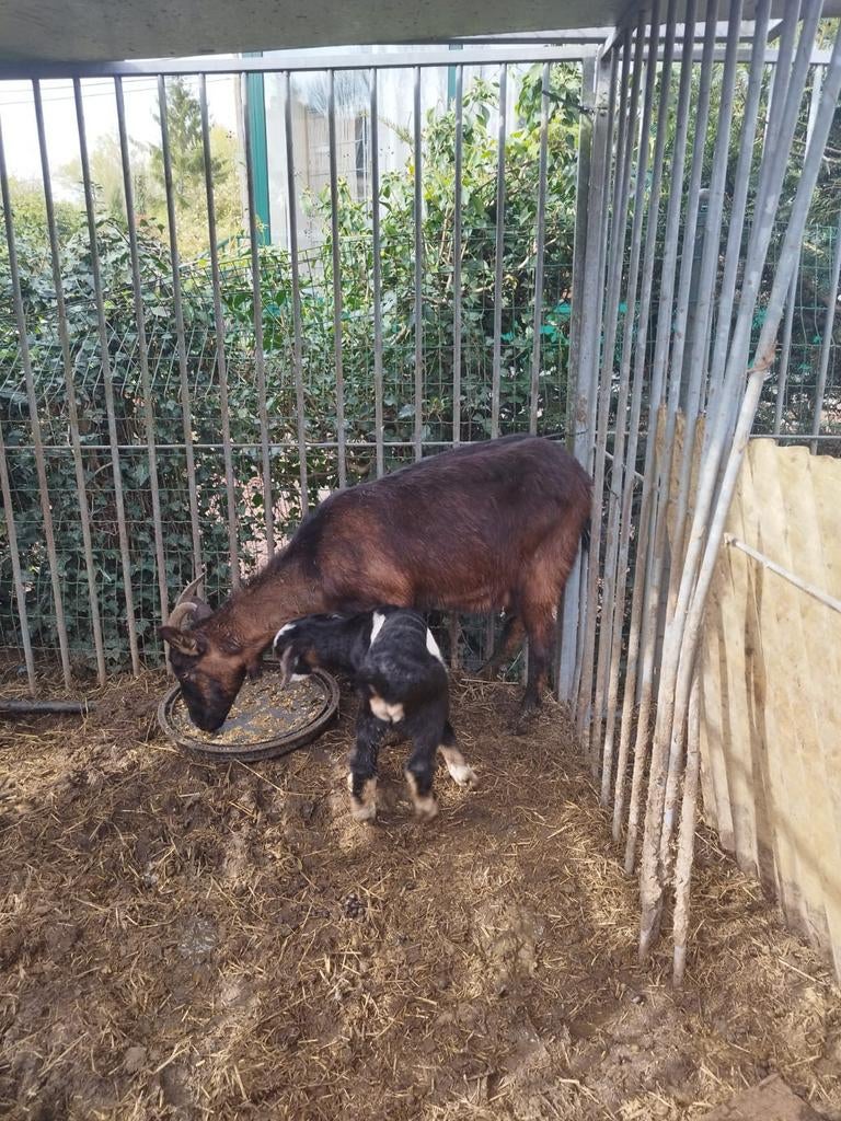 Avant-hierTatiana Van De PutteWambeek - 2 Chevreaux sans cornes de 2026Bonjour, à vendre pour compagnie ou reproduction 2 boucs croisés anglonubien et saanen ils sont sans cornes (mottes) nos chevreaux sont élevés sous leurs mères et partiront sevrés. Disponible à partir