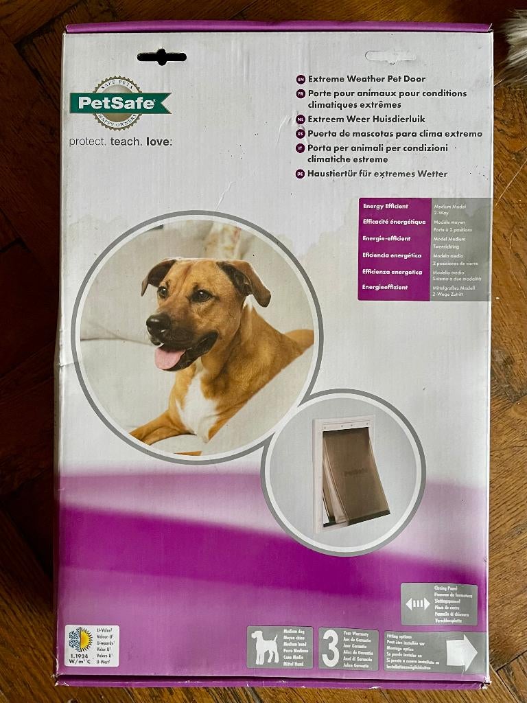 - porte pour animauxPorte pour animaux pour conditions extrêmes. Neuf, jamais ouvert. J'en ai reçu deux, je vends l'autre. Ca marche très bien et ça reste assez isolant. Mon chien est ravi.Enlèvement ou Envoi