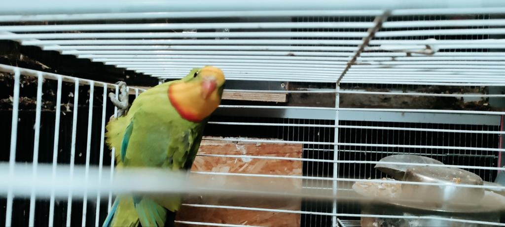 5 avr. 26Adveghel, NL - Barraband parkiet 2025°26-05-2025 niet geringd. Vermoedelijk een man. Keel begint rood te kleuren. Komt uit een gemengde buitenvolière.