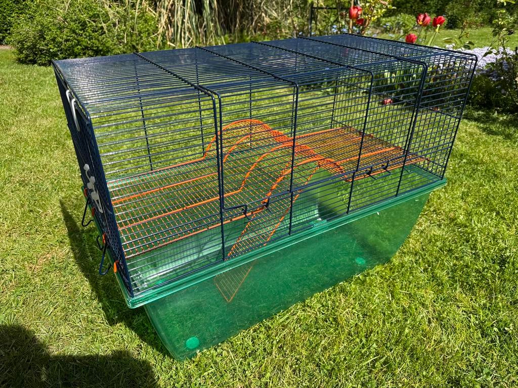 - Cage 2 etages rongeurCage 2 étages pour rongeurs longueur 66cm largeur 35cm hauteur 52cm espace entre barreaux 1cm pas d’envoi ni de livraison!Comme neuf Enlèvement