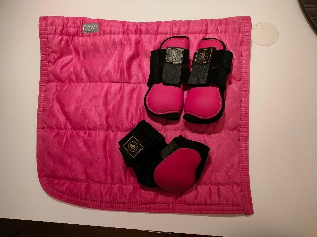2 avr. 26Mlle Aurélie L.Woluwe-Saint-Lambert - équipement pour chevauxHousse rose et protège-jambes 20€ franges anti-mouches complètes, € épi de la taille de la bride gratuit 20 € rênes avec clips € système sprenger gratuit 4 étriers de sécurité avecUtilisé Enlèvement ou Envoi