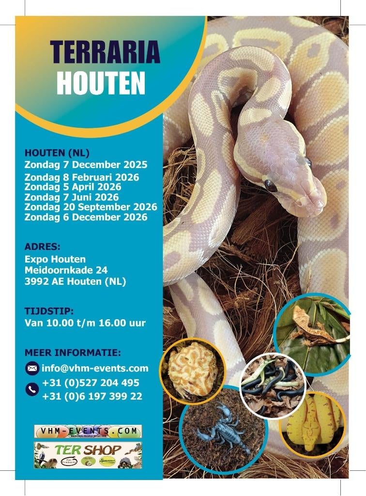 Aujourd'huiAnnonce au topVHM-EventsHouten, NLTerraria&Exoknaag Houten 05-04-2026 Benelux LargestAmphibienHouten, NLAnnonce au topAujourd'hui - Exoknaag&Terraria Houten 05-04-2026 Benelux Plus grandTerraria&exoknaag houten 05-04-2026 terraria est le plus grand événement consacré aux terrariums du benelux et l'un des plus importants au monde. Deux salles d'une superficie totale de 7 0