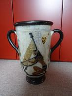 A vendre cruche art deco avec poignée tressée. Oeuvre du céramiste guerin de bouffioulx. Hauteur 32 cm diamètre 24 cm excellent état.