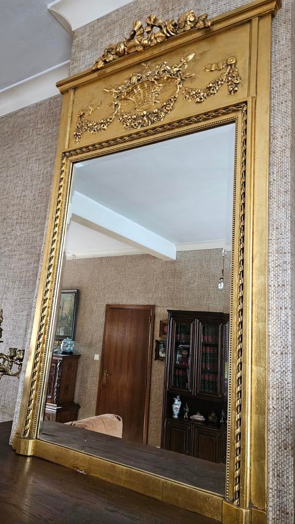 - Prachtige Antieke Franse Trumeau Spiegel – Verguld Te koopTe koop aangeboden: een karaktervolle, antieke franse trumeau spiegel (ook wel schouwspiegel genoemd). Deze spiegel is een echte blikvanger voor in een klassiek, modern of landelijk. Kenmerken: stijl:Enlèvement