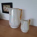 1 juin 22BerJambes - Pots à lait anciens irisés et dorésDeux pots à lait anciens en céramique irisée et dorée. Hauteur 9,5 et 18 cm. Très bon état. Dorure légèrement effacée vu l'usage.Enlèvement ou Envoi