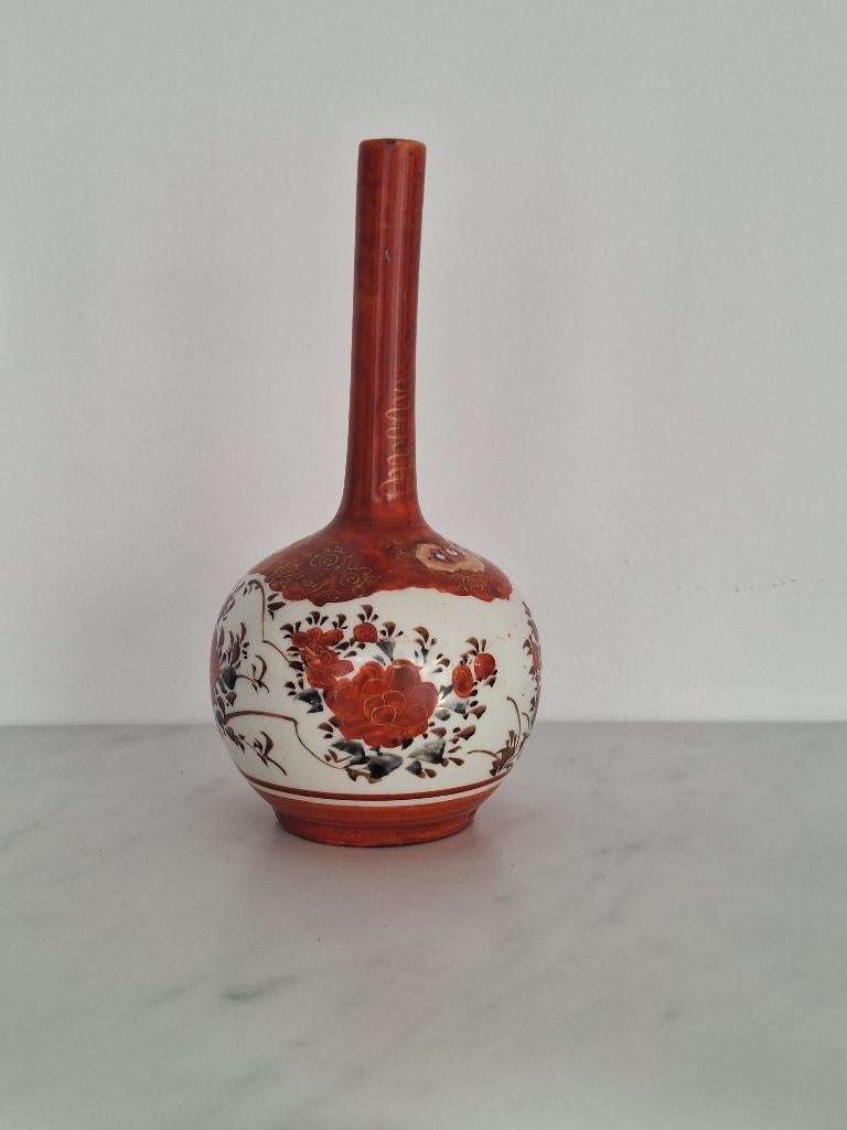 - Vase Japonais Kutani 19emAncien vase à bourgeons en porcelaine kutani japonaise, à décor floral rouge fer, époque meiji, fin du xixe siècle 17cm de long signé.Enlèvement