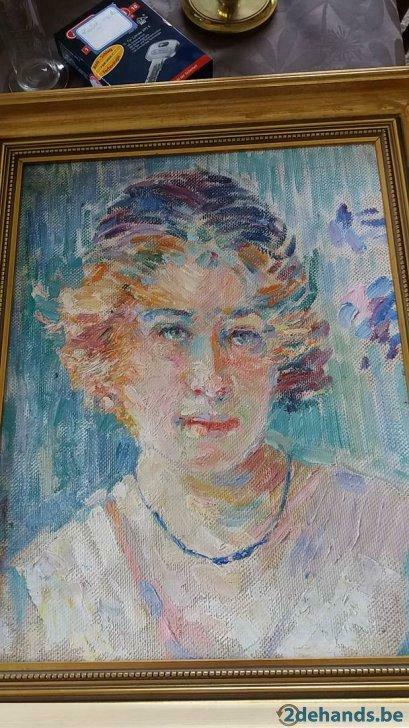 17 avr. 21cLeuven - Schilderij meisje op doekUit collectie stijl impressionisme van asbroeck uccle conditie: gebruikt levering: verzenden