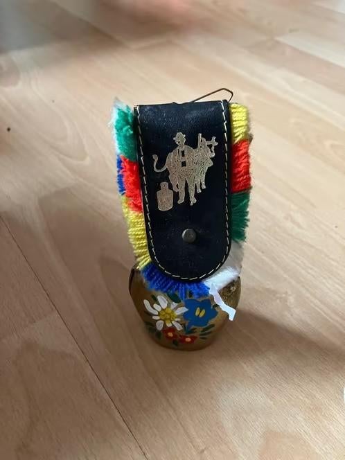 HierPub au topCatawikiToute la Belgique - clochette de vache/cloche de vacheCloche à vache/cloche à vache avec finition colorée lugano petite cloche décorative pour vache avec finition folklorique colorée. La cloche est décorée de motifs floraux en blanc, bleu et rouge. Au soEnlèvement ou Envoi
