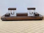 - Encrier (3) - Bois, VerreEncrier ancien en bois de palissandre avec deux encriers en cristal, datant de 19401950, provenance france; lot de 3 objets, en bon état avec quelques usures dues à l’âge.