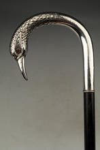 15 avr. 26Pub au topCatawikiToute la Belgique - Canne de marche - Argent 800Canne art nouveau avec manchon en argent en forme de tête de cygne, argent 800, origine allemagne, période 1900–1910, en bon état avec de légères traces d’usure, longueur 88 cm.