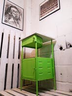 8 avr. 25goldGlain & Partie Ans - Armoire - Métal - Petit meuble industrielMobilier industriel en métal vert avec porte verrouillable et étagères basses, compartiment supérieur battant, fabriqué en italie vers 1990–2000, dimensions 84 x 35 x 35 cm.