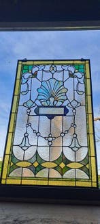 7 avr. 26HenricusSteenokkerzeel - Art nouveau Vitrail - 1920-1930Vitral art nouveau des pays-bas, environ 1920, dimensions 81 cm de haut à 51 cm de large, profondeur 1 cm, poids 4 kg, en bon état avec de petites traces d’âge.