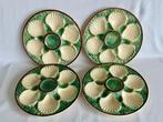 15 févr. 26GaétanSchaerbeek - Faïencerie Longchamp , Barbotine Faïence Oesterborden metQuatre assiettes d’huîtres en faïence longchamp, france, ca. 1930–1940, Décorées à la main de vert et crème avec six compartiments et un renfoncement central pour le citron, diamètre environ 24 cm, ha