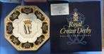 - Collection de souvenirs - Assiettes commémorativesTrois assiettes commémoratives de royal crown derby du royaumeuni en porcelaine fine, dont une assiette octogonale pour le mariage royal de 2011 (certificat n° 754 sur 1500) et une assiette pour le co