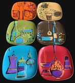 31 mars 26Pub au topCatawikiToute la Belgique - Niftrik Ornamin - Assiette (6) - mélamine - AssiettesSix assiettes à petit-déjeuner vintage rectangulaires signées niftrik ornamin suède, style midcentury modern (1960–1970), en mélamine, 19,5 × 19,5 cm et 1,6 cm d’épaisseur, décorées en rouge, vert cla