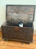 28 mars 26CatawikiToute la Belgique - Coffre de rangement de jardin - Noyer - coffre-banquetteCasse d'époque en noyer dans le style renaissance, datant du xviie siècle, en bois de noyer, dimensions 96 cm de long, 41 cm de profondeur et 48 cm de haut.