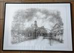 Litographie de ben genaux 1911/1996 de 51x37 cm represente le chenoy a anderlues tache brune sur le tour ou il n'y a pas de dessin mise en valeur par un encadrement cartonné épais placé dans un encadrement en metal avec vitre anti reflet dime...