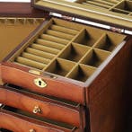 20 avr. 26SBOMiddelkerke - Boîte à bijoux - Boîte à bijoux - 5 niveaux - BoisUne boîte à bijoux en bois, faite à la main, des années 2020, à cinq niveaux, mesurant 27 × 20 × 25 cm, équipée d’un miroir intégré, de quatre tiroirs coulissants avec compartiments et de deux portes