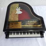 Une mallette à bijoux musicale vintage en forme de piano royal, fabriquée en résine, lucite et plastique, datée 1980–1990, dimensions 27 x 22 x 13 cm, origine chine, en bon état d’occasion avec de légers signes de vieillissement.