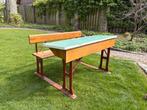- Banc d'école Lennards antiqueMagnifique bureau d'école ancien de la marque lennards. Ce charmant banc avec bureau d'accompagnement est en bois et possède une structure robuste en métal rouge. Idéal comme pièce décorativeEnlèvement