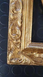 Aujourd'huiKUNSTHUIS.BEBrasschaat - Cadre- Cadre somptueux – cadre en bois doré avec un richePrunkrahmen en bois à relief raffiné au style baroque avec finition dorée; dimensions extérieures 80 × 70 cm, internes 56 × 46 cm; période estimée 2000–2010; en bon état avec de légères marques d’âge;
