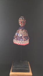 - Figurine-poupée - Fali - CamerounFigur-puppe fali originaire du cameroun, en bois, verre et cuir, vendue avec socle; dimensions 27 × 15 × 11 cm, poids 810 g, en état correct.