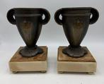 19 déc. 25*Lapis*Lazuli*BruxellesGarniture de cheminée Piolaine (Paris) * Antiq XIXe *Enlèvement ou EnvoiBruxelles19 déc. 25 - Cassolette (2) - MarbreDeux cassolettes en marbre d’époque antique, originaires de france, datées entre 1850 et 1900, mesurant 14 cm de haut, 12,5 cm de large et 7,8 cm de profondeur, en bon état avec de petites traces d’âg