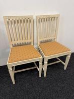 - Chaise (2) - BoisDeux chaises anciennes suédoises en bois, datées 1850–1900, blanc et jaune, dimensions hauteur 86 cm, largeur 43 cm, profondeur 43 cm, hauteur d'assise 43 cm, en bon état avec de petits signes d&#