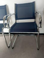 HierPub au topCatawikiToute la Belgique - BÜM - Chaise (2) - Acier, Textile, ChromeDeux chaises vintage de büm, fabriquées en italie, bleues, en acier, textile et chrome, dimensions 90 cm de haut, 60 cm de large, profondeur 60 cm, hauteur d'assise 58 cm, période estimée 1990–200