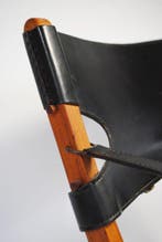 7 avr. 26ZifDrongen - Poul Hundevad - Poul Hundevad - Chaise - Chaise de campagneChaise de campagne poul hundevad (modèle ph70), chaise pliante en teck éroitée au style midcentury avec assise, dossier et accoudoirs en cuir noir, fabriquée au danemark par vamdrup stolefabrik vers 1