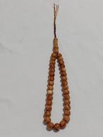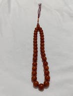 - Chapelet - Ambre - 1970-1980 - Chapelet de perles de prièreRoches de prière en ambre, spécimen originaire d’inde, daté 1970–1980, 33 perles en forme de barillet, longueur totale 60 cm, perles d’environ 17×15 mm, poids 117 g, couleur nescafe, en bon état avec