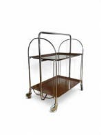 4 avr. 26Nouchka DonghiErps-Kwerps - Chariot de service - Dinette - Chrome, GerlinolChariot dinette pliant sur roulettes, cadre tubulaire chromé et plateau en placage laminé bois, fabriqué en allemagne dans les années 1960–1970, en bon état d’usage avec de légères traces d’usure; dim