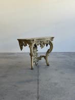 1 avr. 26EllySmeetWezembeek-Oppem - Console - Bois - Console vénitienne - H : 85 cmConsole demi-lune antique italienne en bois laqué avec décorations florales peintes à la main et détails dorés, style classique vénitien, hauteur 85 cm, largeur 102 cm, profondeur 30 cm.