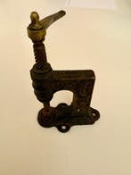 17 mars 26erwinSint-Laureins - Presse - Cordonniers ou selliers français ornés Rivet ouFabrication probablement daudé, datée de 1850–1900, presse française ornée pour rivets ou œillets en fonte avec poignée en bronze, en bon état d’utilisation avec de légers signes d’âge.