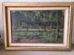 21 sept. 20Art4BrainsEde, NL - Geo Poggenbeek (1853-1903) Atelier - WeideWeide is een 19eeeuws olieverfschilderij van geo poggenbeek (1853–1903), een landschapswerk in impressionistische stijl, gesigneerd, uit nederland, met een vergulde atelierlijst. Een mooi werk van de