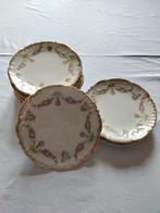 6 jolies anciennes petites assiettes à dessert de dfb elles sont bordées de dorure et décorées de petites roses. Diamètre 15cms impeccables