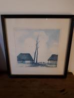 15 mars 26papiermarche beMere - Dirk Baksteen Le toit de chaume à Mol AchterbosPaysage de la campine (mol achterbos) avec une grange en pente. Titre : "le toit de chaume". Encadré dans un fin cadre en bois, derrière passe-partout et verre. Dimensions : 15 x 22 cm (gravEnlèvement ou Envoi