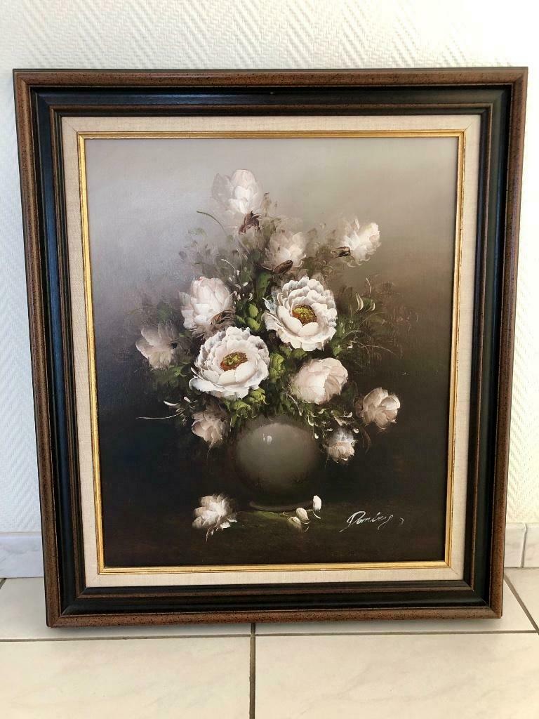HierBArendonk & Deel Retie - Schilderij stilleven bloemen in vaas Anton DombergDe afbeelding is een bloemenstilleven dat is gesigneerd door de bekende kunstenaar anton domberg. (1882–1954) 2 Stuks van dezelfde afmetingen inclusief houten kader breedte 26cmx32cm hoogte kader is 4Enlèvement ou Envoi