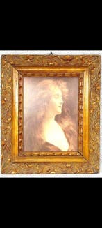15 févr. 26Pub au topCatawikiToute la Belgique - Cadre - Bois, stuc décoratif, dorure - Cadre Art NouveauCadre en bois de style art nouveau sécession française, daté environ 1900–1910, avec moulure en stucco et dorures, dimensions externes 50 × 40 cm, profondeur 4 cm, en bon état d’usage avec de légères