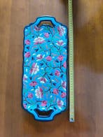 24 janv. 25FarildeGentbrugge - Longwy - Plat - FaïencePlateau rectangulaire à poignées en faïence longwy, datant des années 1950–1960, décor floral n° 5685 avec lotus et pivoines en rose, blanc et vert sur fond bleu turquoise profond, décoré à la main, d