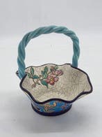 29 juin 22jourdechineJemappes - Émaux de Longwy - émaux de longwy - Vaas - AardewerkEen faïence mand van émaux de longwy uit frankrijk, circa 1950–1960, in goede staat met enkele slijtage en vlekken door de leeftijd; afmetingen 14,5 cm breed, 13 cm hoog en 10,5 cm diep. Mand met long