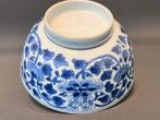 Ovale minton porseleinen pot in blauw en wit met bloemendecor, gesigneerd en genummerd, circa 1900–1910 gemaakt in het verenigd koninkrijk; afmetingen 8 cm breed, 5,5 cm diep, 5,5 cm hoog, gewicht 150 g, in uitstekende staat. Vide-poches fin xixe fai...