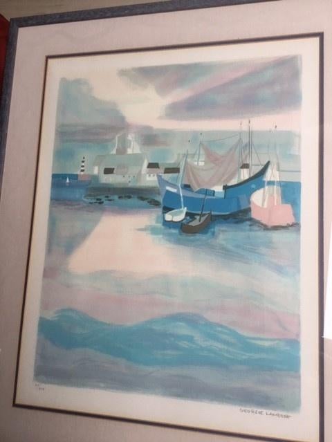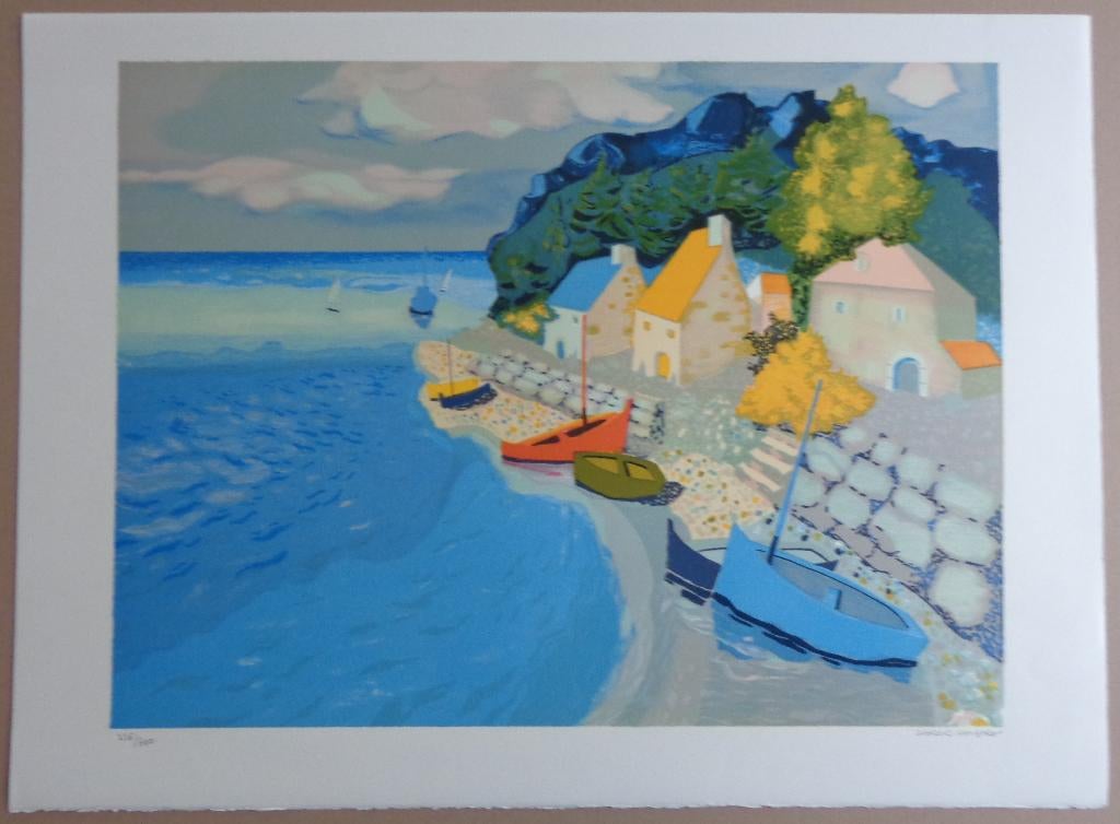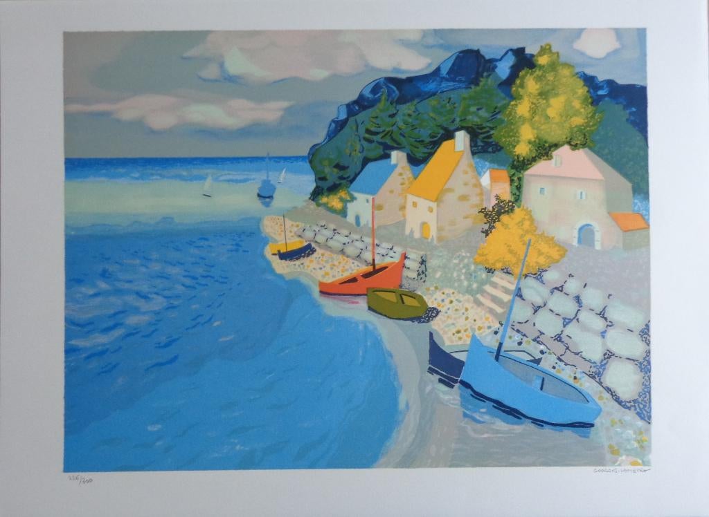 10 avr. 26CGEghezee - GEORGES LAMBERT / BARQUES DE PECHES / KLEURLITHO / 56x76cmGeorges lambert (1919-1998) (frankrijk/france). Titel/titre: "barques de pêche". Kleurlithografie op papier/lithographie coloré sur papier. Gesigneerd met potlood/signé avec crayon. Ex.nr. 2Enlèvement ou Envoi