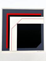 - Gilbert Decock (1928-2007) - CompositieZeefdruk op papier van de belgische kunstenaar gilbert decock (1928-2007), getiteld compositie, uit 1992, beperkte oplage 73/100, in zwart, wit, rood en grijs, 34 × 26 cm, ingelijst in een witte lijst