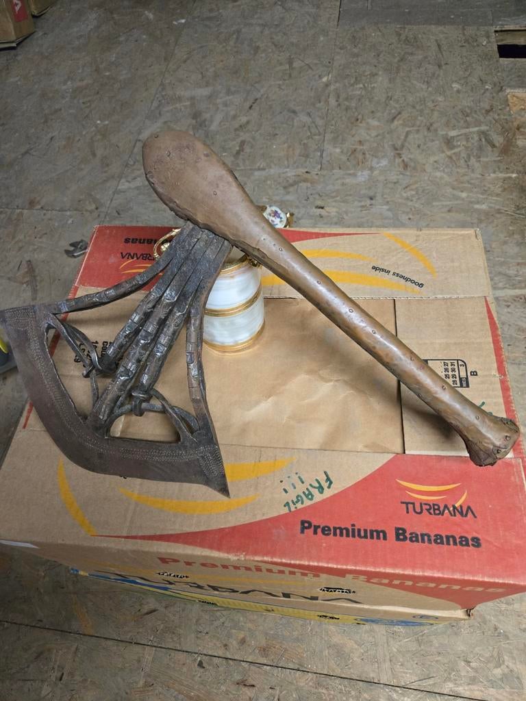 2 févr. 26BAUDUINSt-Mard + Partie De Dampicourt - Hache de cérémonie ancien congo belge 1950.Hache de cérémonie ancien congo belge 1950. Antiquité, toute belle. 60 Cm, 1 kg.Enlèvement
