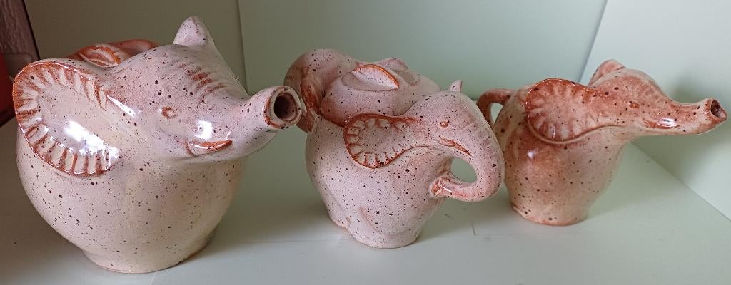 - service à thé éléphant très rare artisanal belgeEtait fabriqué dans la région entre hotton et barvaux aux mignées dont la famille n'y est plus et était fait artisanalement, quelques pièces uniquement. Artisanat belge. En excellent état. RegardeEnlèvement ou Envoi