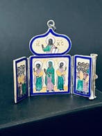 3 avr. 26GDBoutersem - Argent 84 Zolonics - Hanger - Religieus icoon-triptiekHanger in de vorm van een triptychon, gemaakt van zilver en polychroom email – rusland, xxe eeuwhanger die opent in de vorm van een triptychon, vervaardigd uit zilver en polychroom email.centraal deco