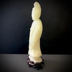 3 févr. 26MTGent - GEEN RESERVE - ANTIEKE CHINESE JADE GUANYIN FIGUUR / BEELD /Antiek chinees jade guanyin-figuur met houten voetstuk uit de qing-dynastie (1644–1911); jade- en houten sculptuur, hoogte 27 cm. Geen minimumbod - antieke chinese jade guanyin figuur / beeld / groep,