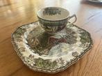 Comprends 2 tasses avec sous tasses, 1 théière, 10 assiettes profonde 19cm, 11 petites assiettes 20 cm dont 2 légèrement ébréchées, 11 grandes assiettes 25 cm dont 1 ébréchée, 1 plat 34,5 cm et un plat 30 cm le tout à venir chercher à westende