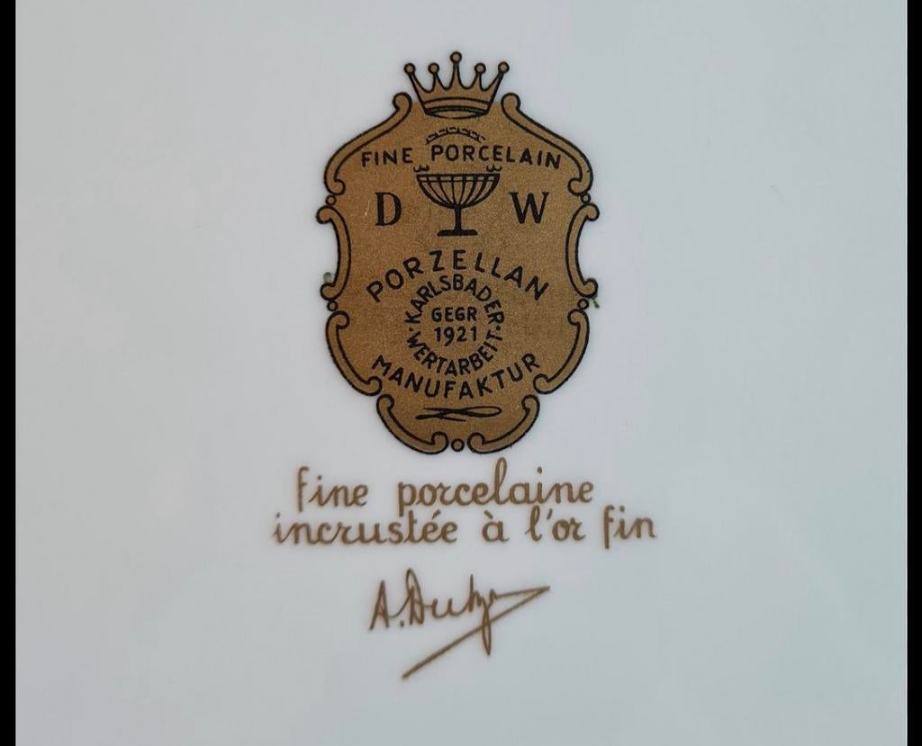 11 févr. 26stijn pofféGent - DW Porzellan KarlSbader WertarbeitFine porcelain -- dw porzellan karlsbader wertarbeit gegr 1921 vintage plate germany.. Diameter 27,3cm en 7,7cm hoog. Steeds als sierstuk op kast gestaan bij grootouders op een houten voetje, is ook aEnlèvement ou Envoi